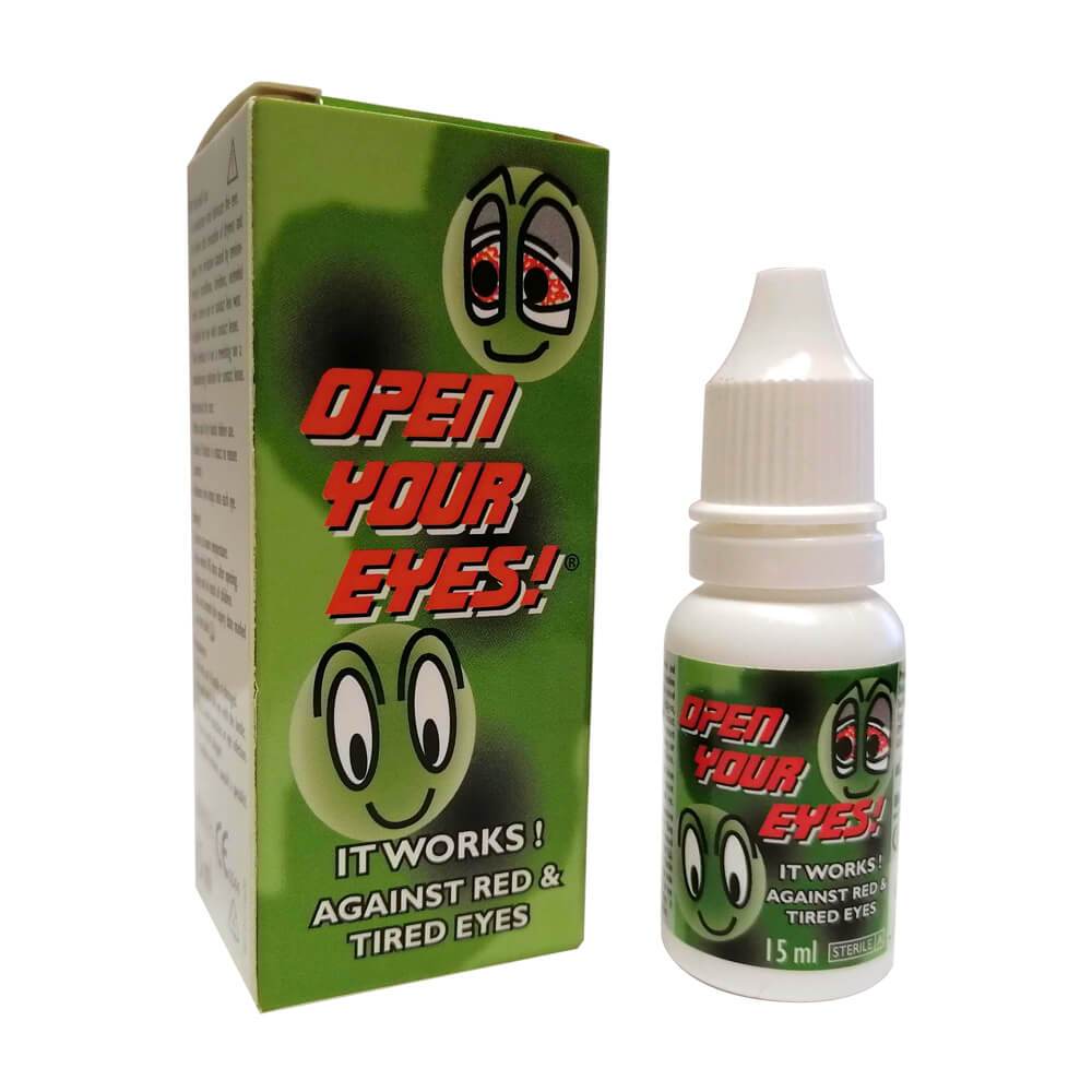 Open Your Eyes eyedrops revitalise tired eyes, lubricate sensitive eyes and give relief to red and uncomfortable eyes resulting from smoky environments, computer work and contact-lens wear.