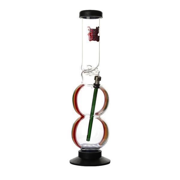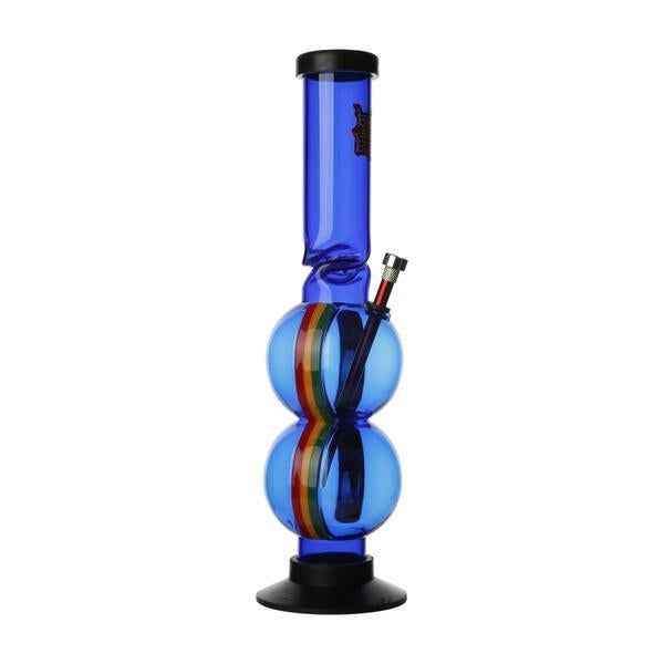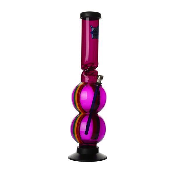 This Coloured Acrylic Double Bubble Bong has colourful stripes either side making this stunning to look at, whilst the double bubble and ice twist design makes it practical for any user.